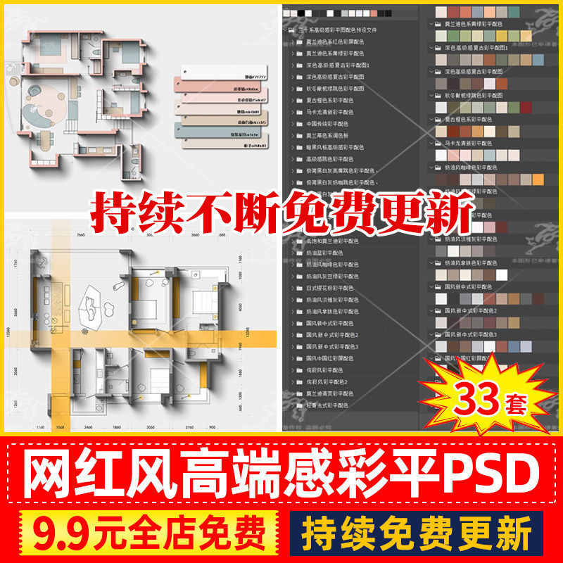 室内设计ps彩平图视频教程cad平立面含psd源文件素材彩屏
