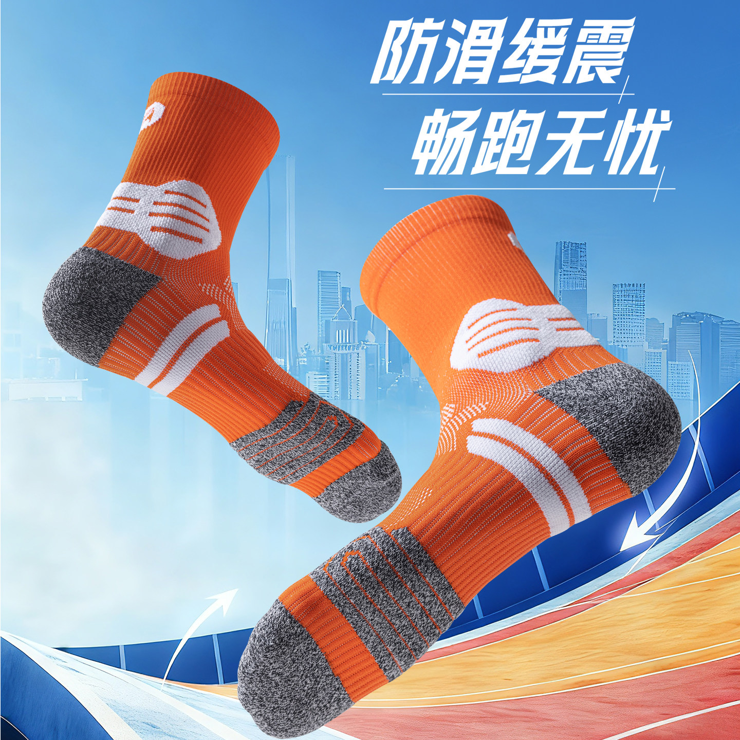 马拉松跑步袜中筒压缩袜男女同款篮球袜毛巾底运动袜跳绳吸汗减震