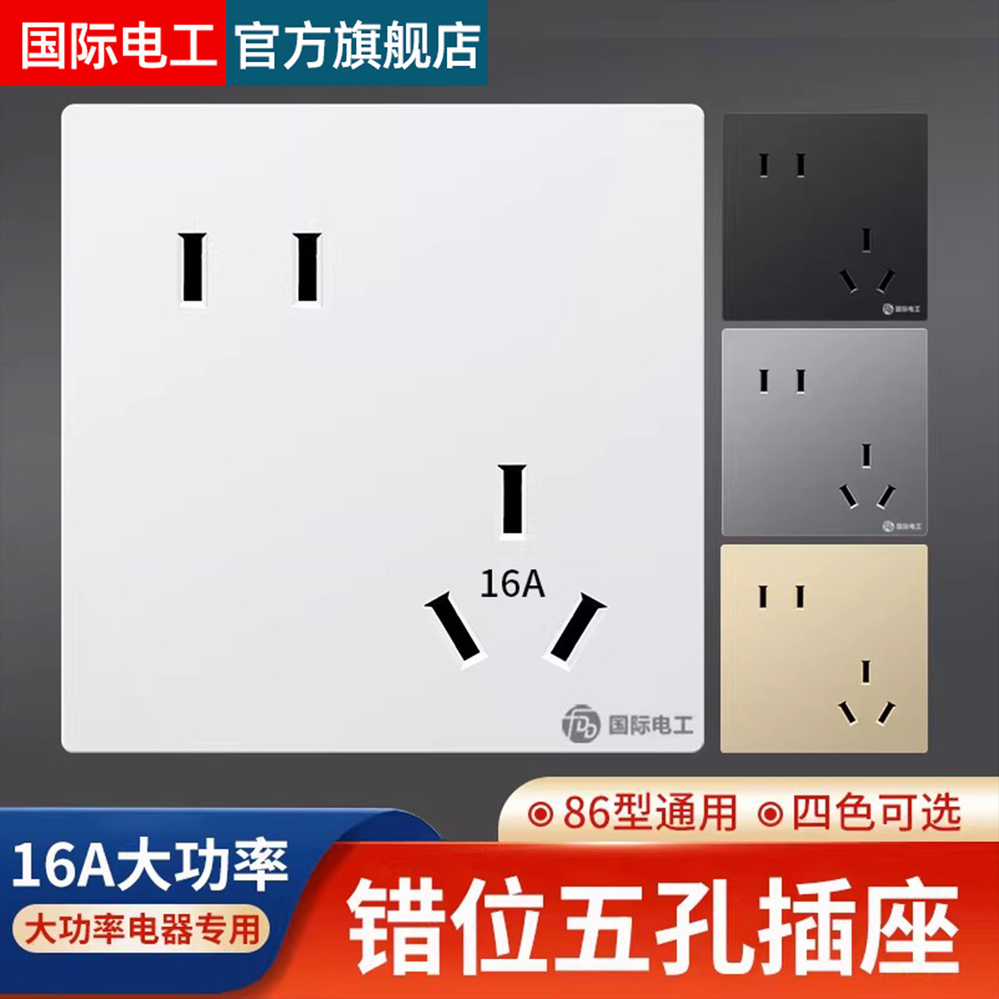 国际电工86型暗装斜五孔插座错位5孔插座面板大功率16A空调三孔