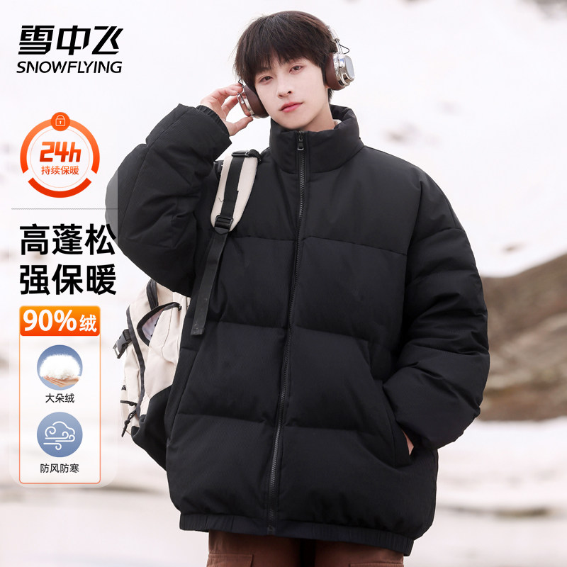 雪中飞羽绒服男冬季保暖男装2024新款立领宽松休闲服情侣拼色外套