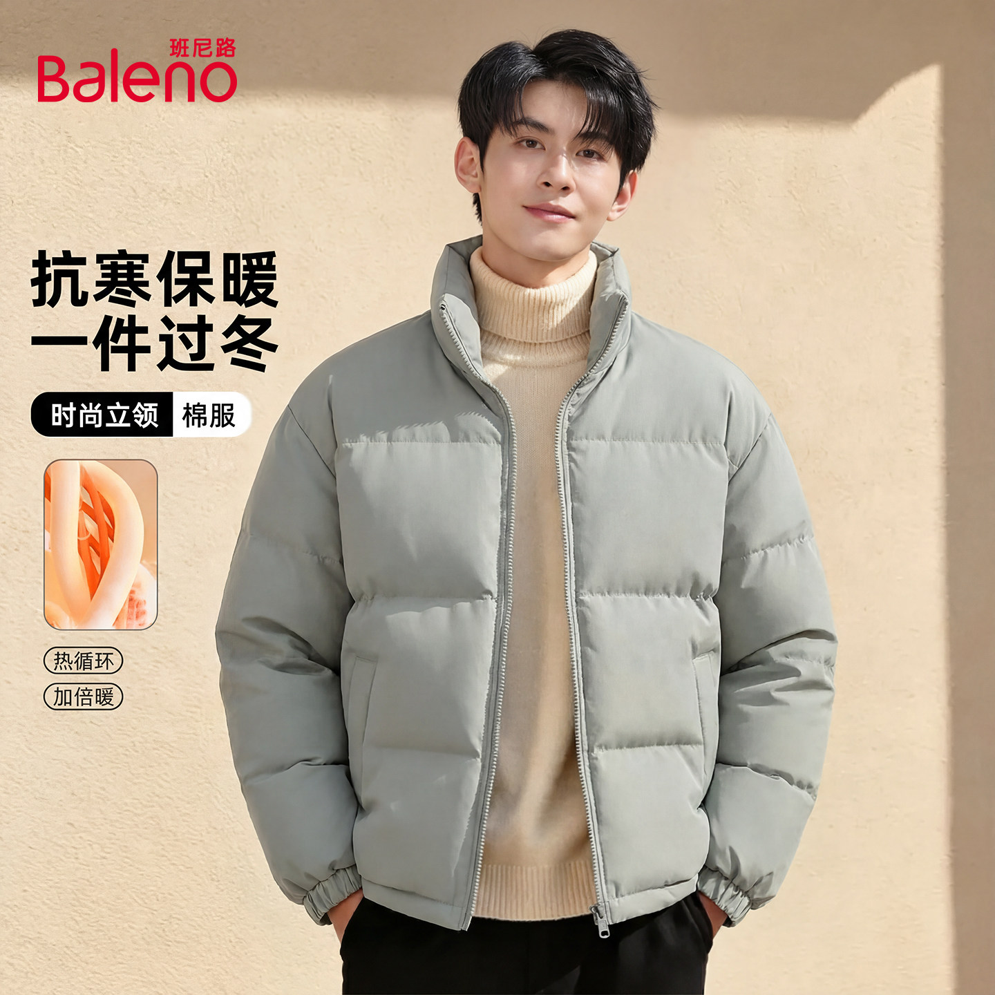 班尼路短款立领防寒保暖棉服男冬季新款青少年加厚外套男装棉袄A