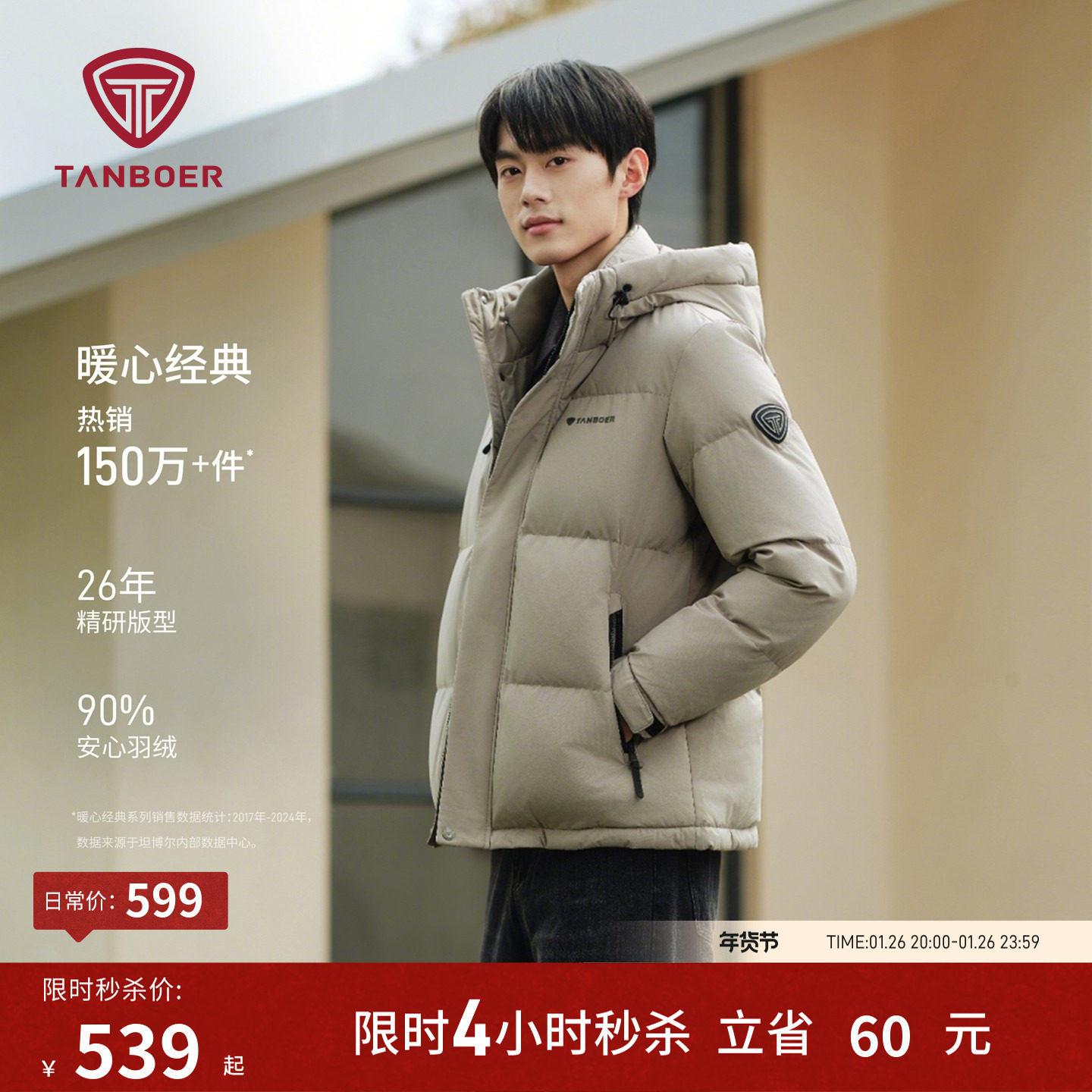 坦博尔25年冬季新款正品羽绒服男装短款连帽加厚保暖经典品质外套