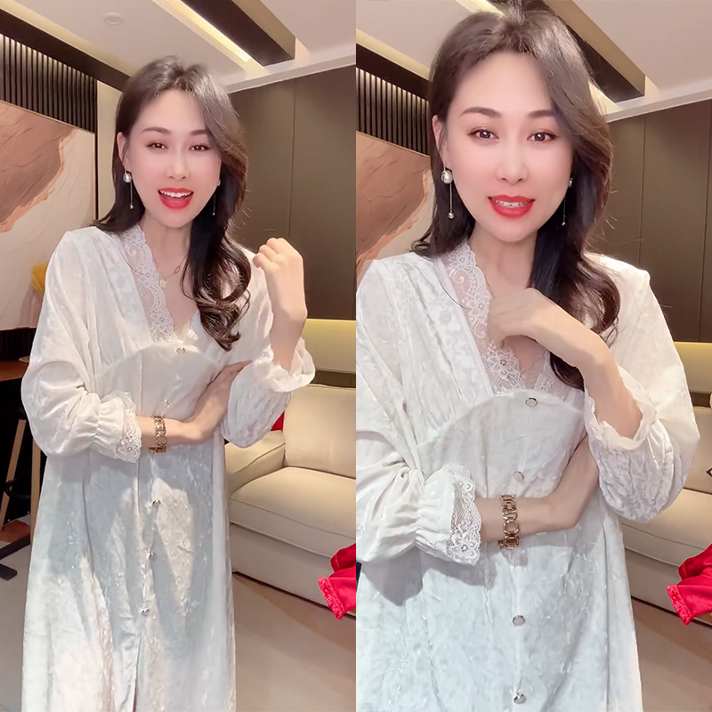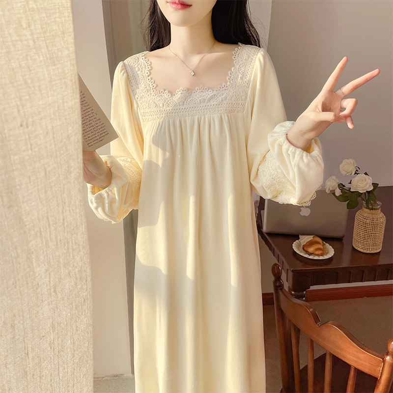 小众ins风 甜美睡裙女款秋冬季新款长袖加绒加厚大码保暖家居服女