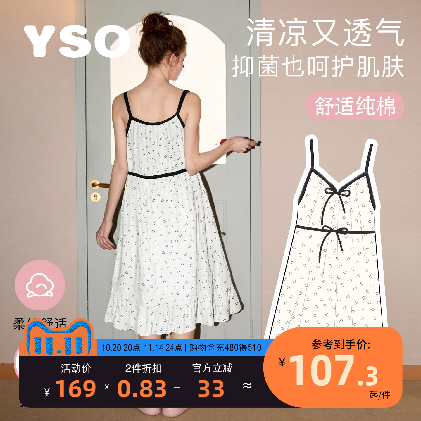 yso【甜美居家】睡裙女印花吊带夏季薄款甜美睡裙时尚宽松长裙B