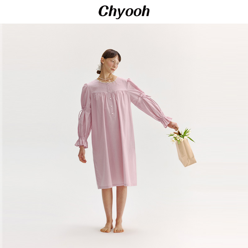 Chyooh池攸家居服秋季新品长袖纯棉圆领女睡衣可外穿甜美睡裙