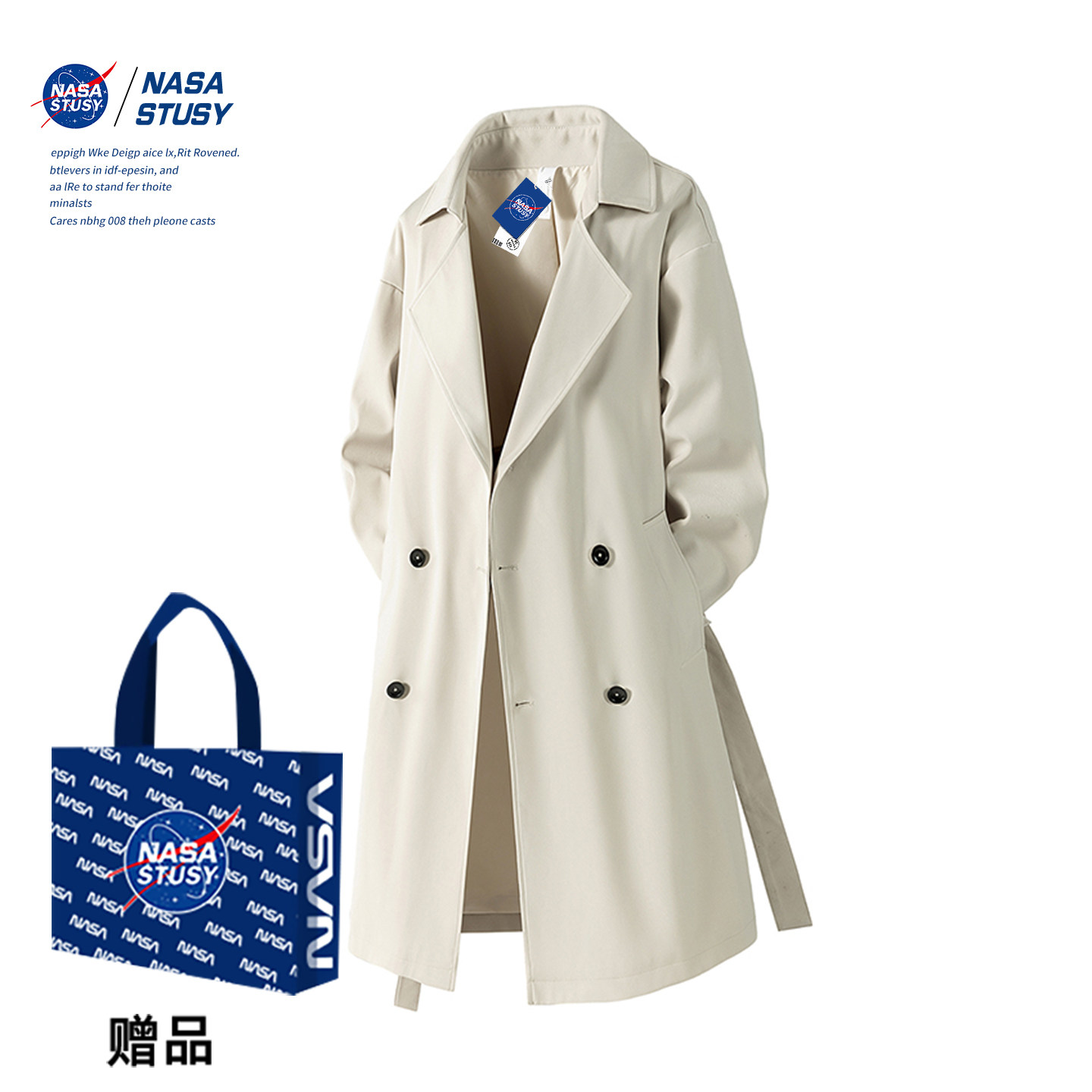 NASA STUSY英伦雅痞风衣秋冬装新款男中长款美式复古外套过膝大衣