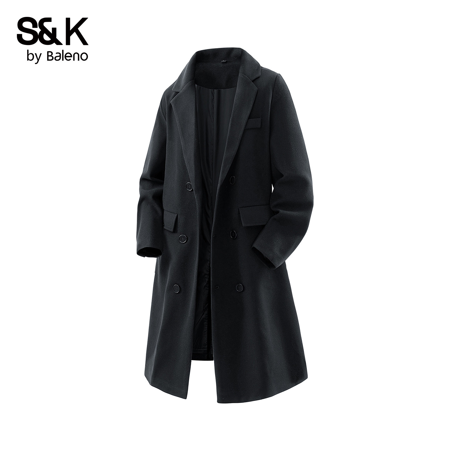 班尼路SK英伦风双排扣毛呢大衣男士中长款冬季加厚保暖韩式外套YS
