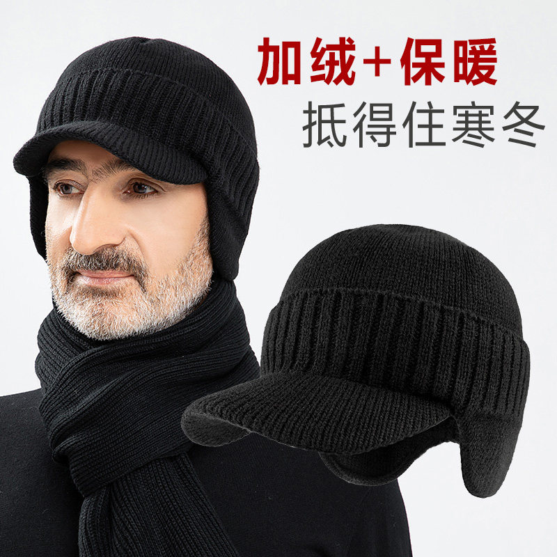帽子男士秋冬季中老年保暖护耳老人帽爸爸针织加绒毛线帽防风防寒