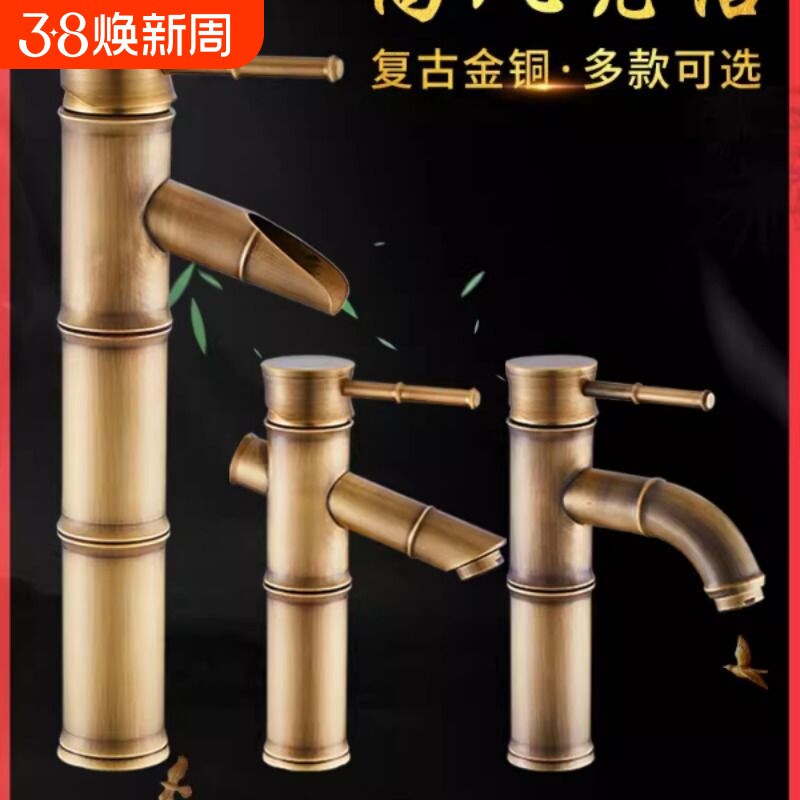 全铜仿古竹节水龙头冷热欧式复古洗面盆台上盆陶瓷盆单冷户外龙头