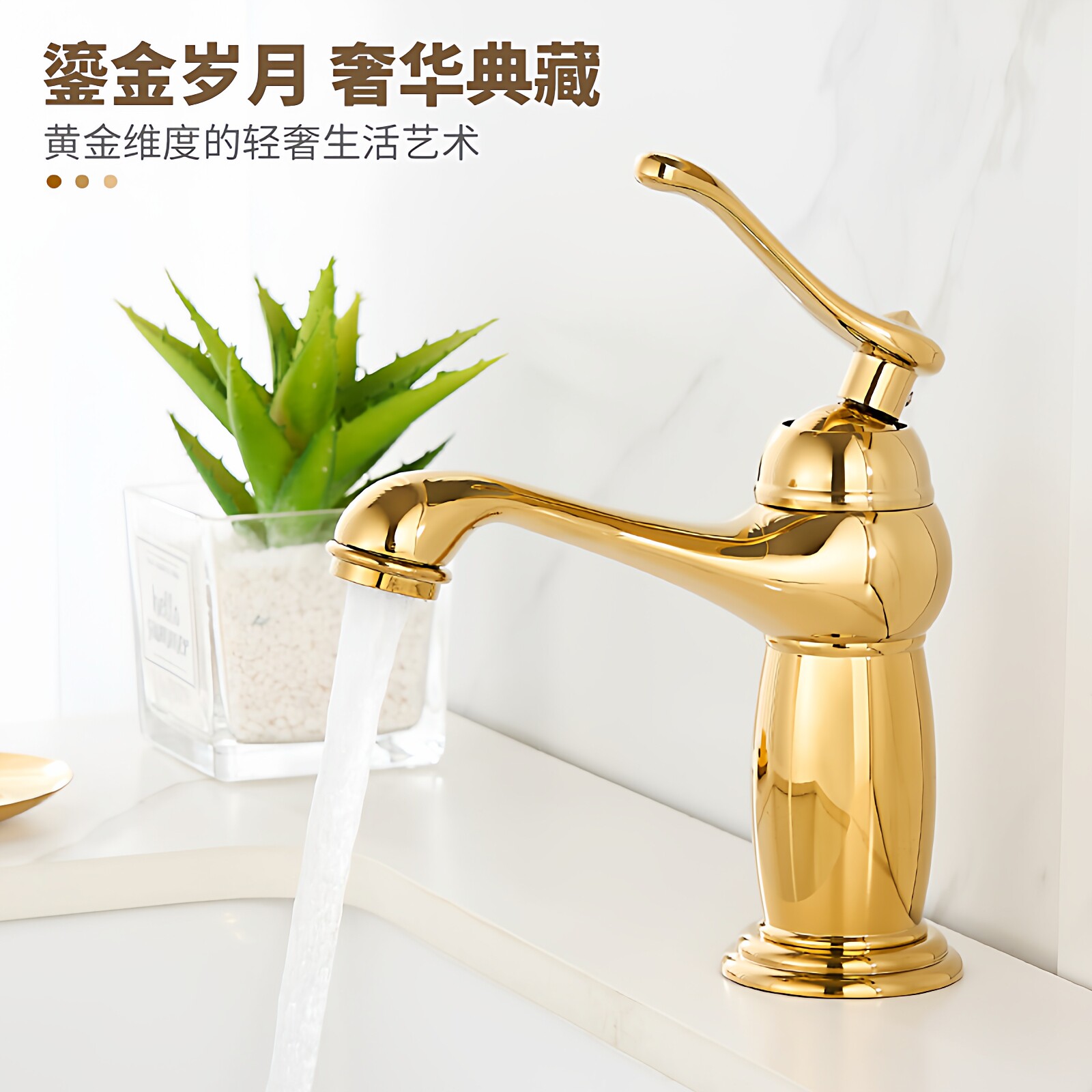 欧式浴室轻奢钛金色全铜面盆洗脸盆台盆洗手盆防溅纯铜冷热水龙头