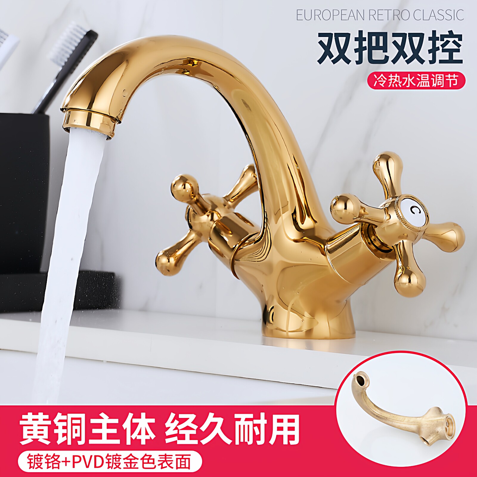双把面盆水龙头冷热水全铜欧式洗脸盆龙头卫生间浴室台盆龙头洗手