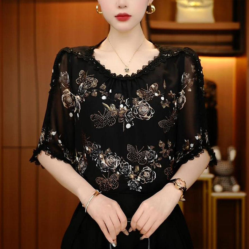 - 真丝花衬衫女