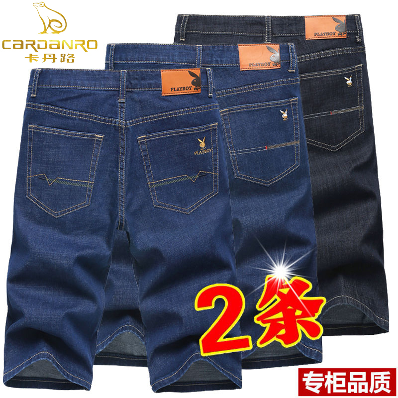 卡丹路弹力牛仔短裤男夏季薄款五分裤子男宽松直筒男士休闲中裤子