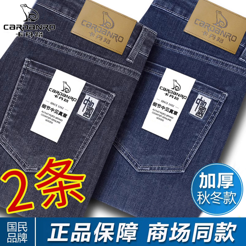 卡丹路牛仔裤男士2025秋冬新款直筒弹力修身加绒加厚商务休闲长裤