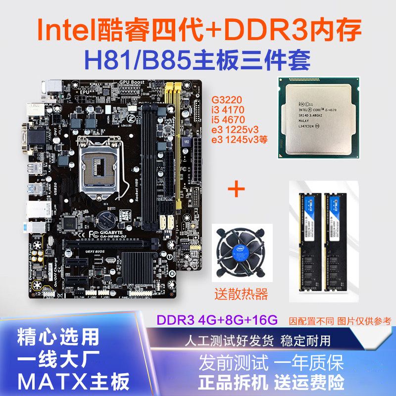 技嘉H81 B85cpu主板内存套装办公拆机内存三件套i3 i5 E3四核4670