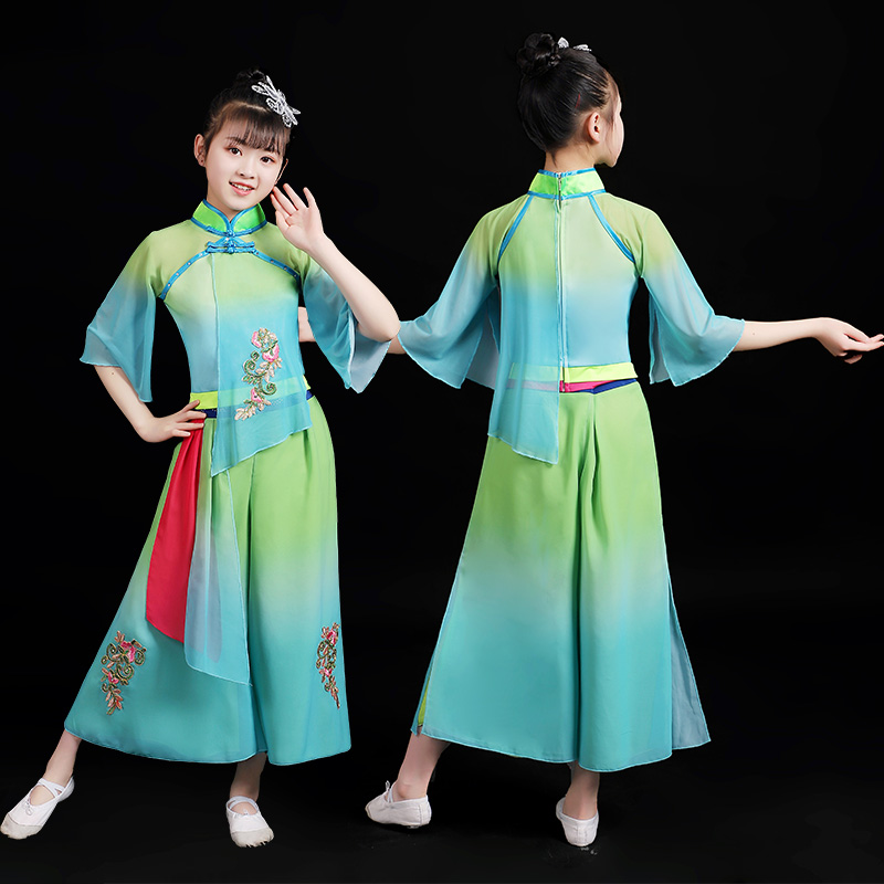 儿童古典舞演出服女童茉莉花秧歌舞新款少儿民族扇子伞舞蹈服飘逸