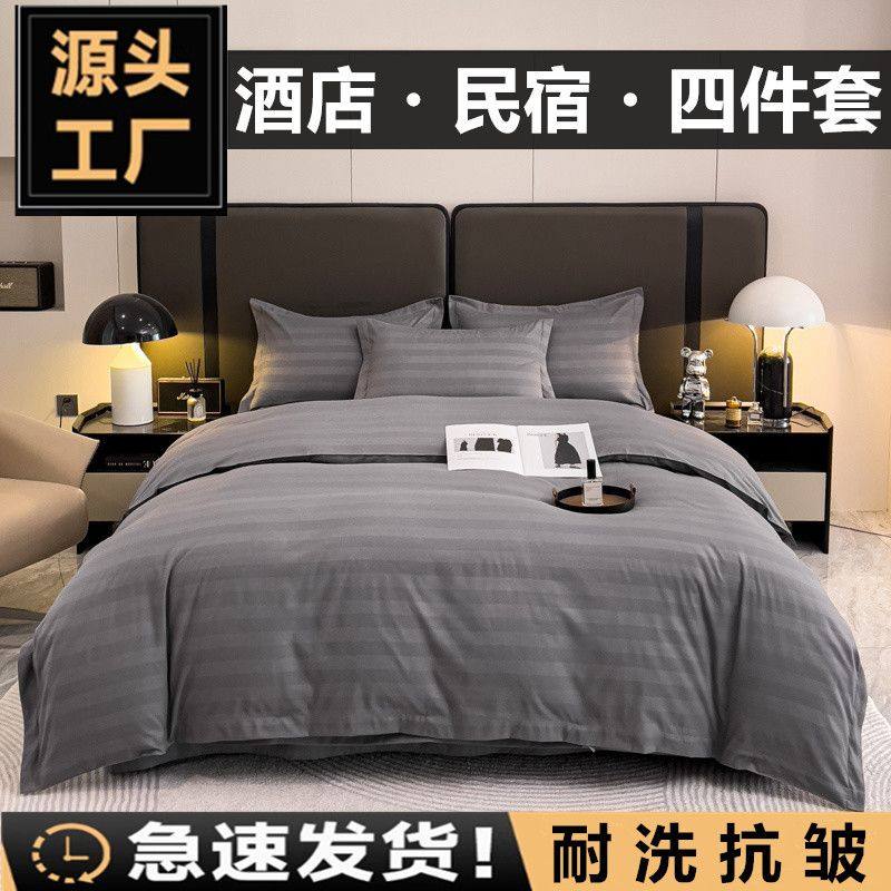 酒店床上用品四件套民宿专用白色床单被套三件套床笠宾馆被子整套