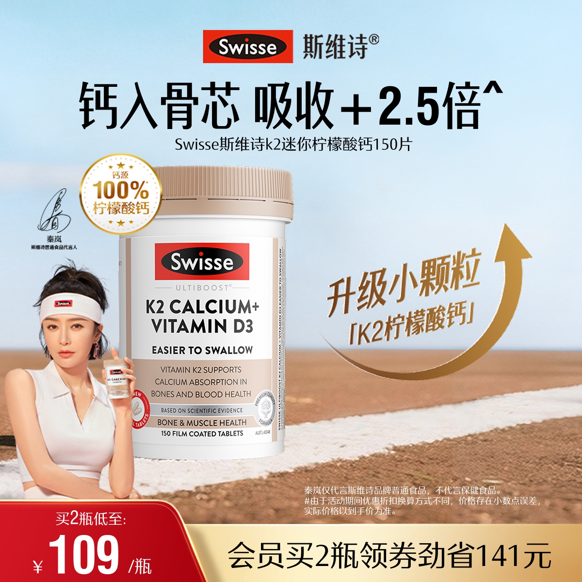 Swisse斯维诗K2柠檬酸钙娘娘钙成人男女性钙片维D3官方旗舰店正品
