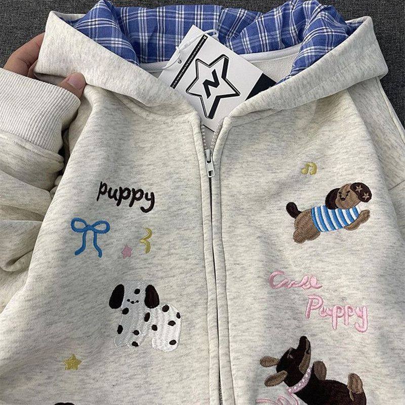 280g双面德绒刺绣秋冬季加厚保暖假两件新款时尚洋气百搭上衣女