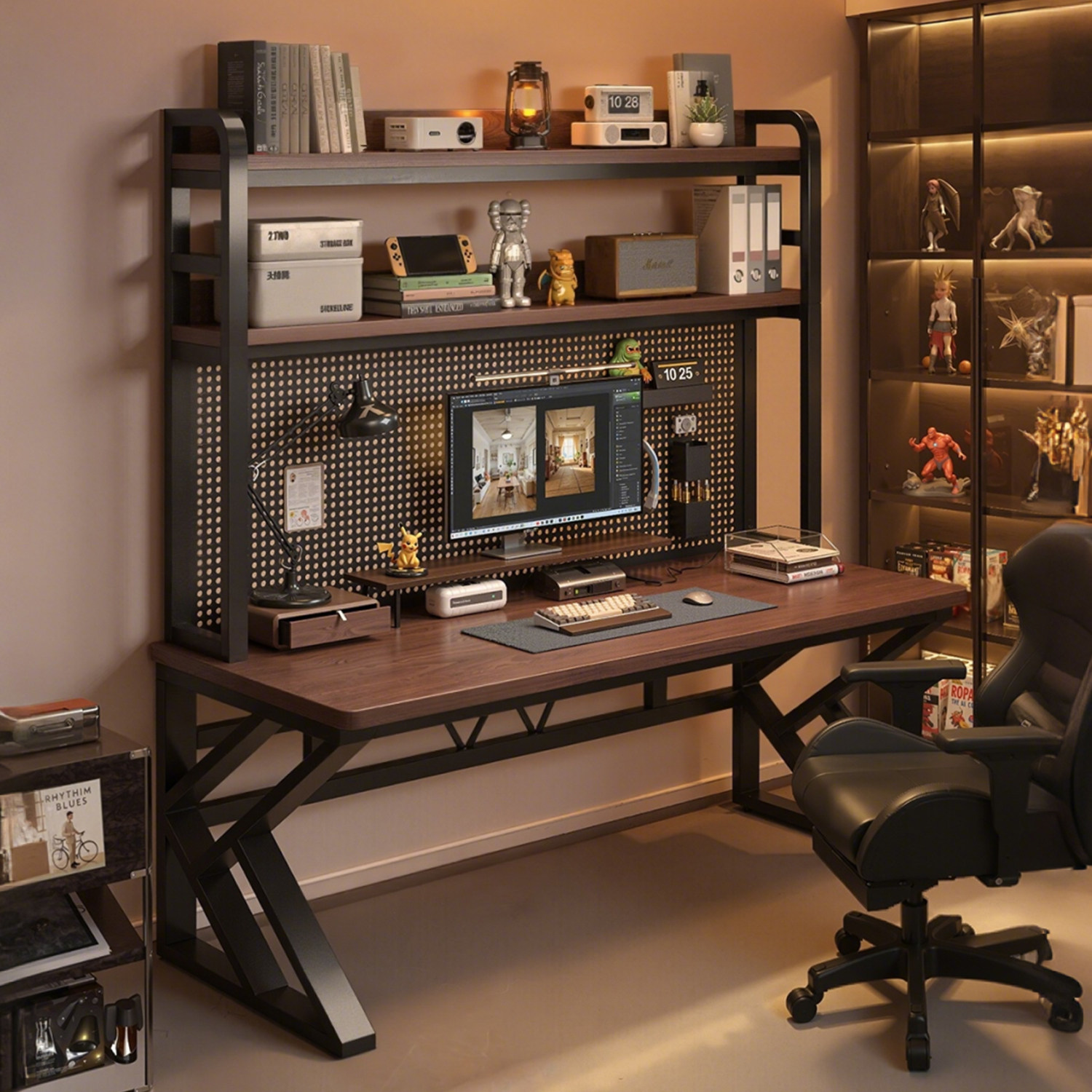 洞洞板电脑桌台式卧室床边桌学生家用实木书桌书架组合学习写字桌