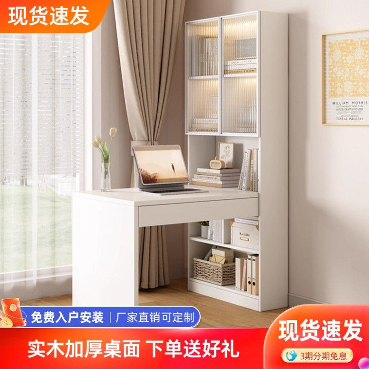 实木书桌书架组合一体家用卧室电脑桌小户型写字桌定制玻璃门衣柜
