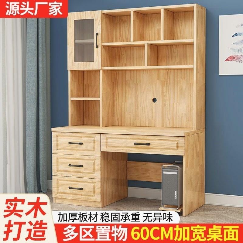 实木书桌书架组合书柜一体台式电脑桌简约家用书房卧室学生写字桌