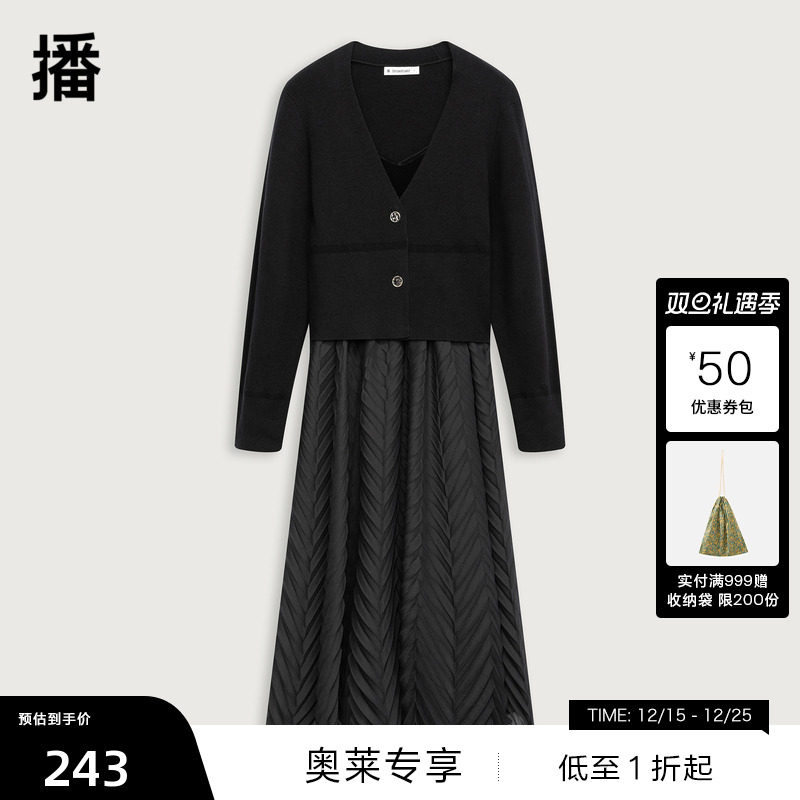 OSA欧莎新中式国风连衣裙套装针织开衫两件套女士冬季2025年新款