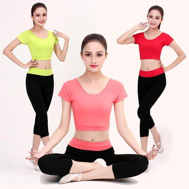 高温瑜伽服套装女夏季纯棉显瘦健身服跑步裤肚皮舞蹈服形体服修身