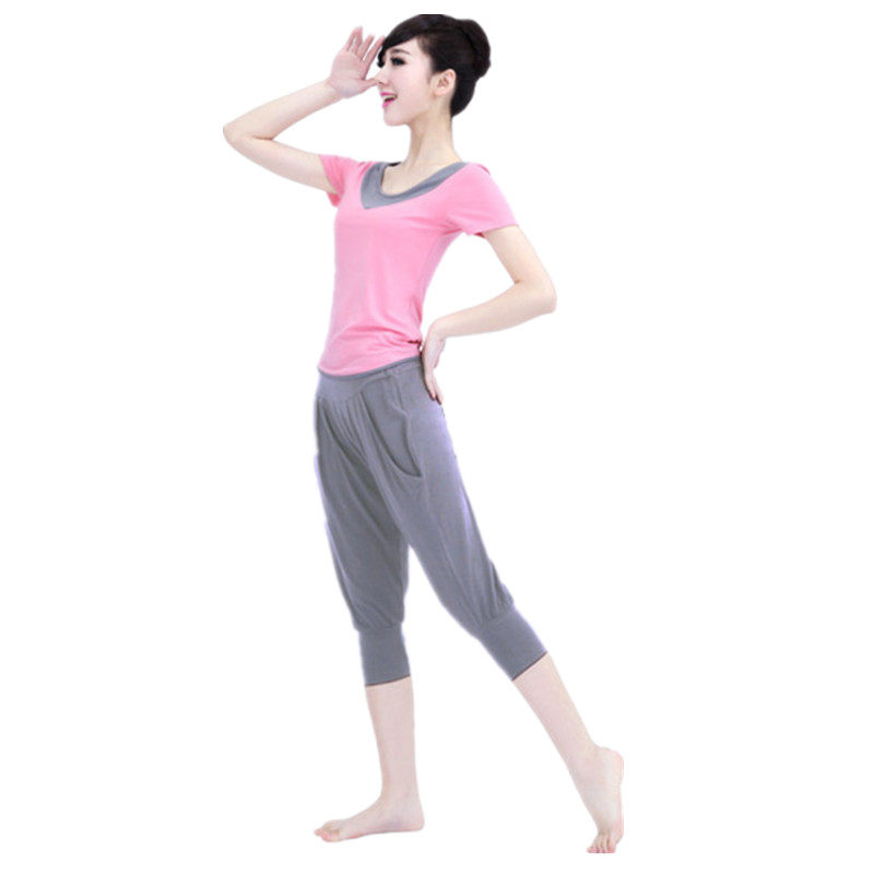 新款韩国高温瑜伽健身运动服包邮短袖莫代尔纯棉七分哈伦裤套装女