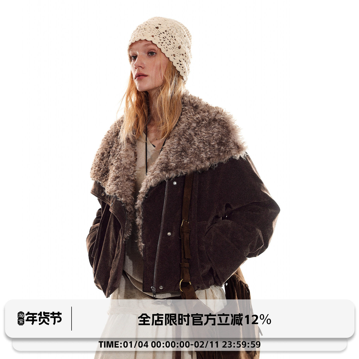 西町村屋外套女冬新款法式浪漫包包大翻领毛毛短款外搭AD8219023