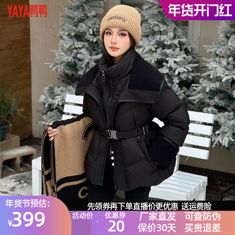 鸭鸭羽绒服冬装2025年新款女大翻领收腰显瘦短款小个子 保暖外套