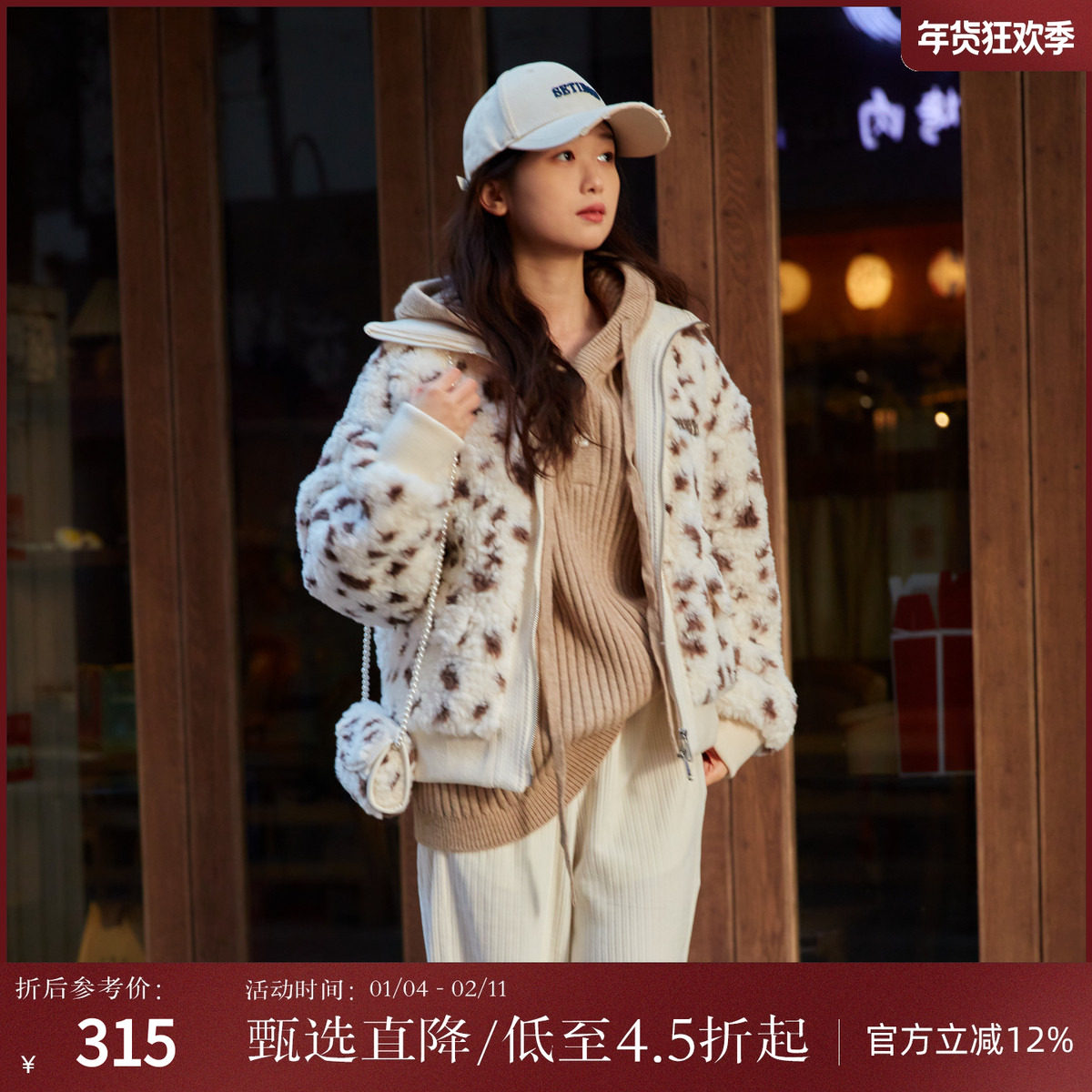 谷邦大翻领宽松皮草女外套短款2025冬季新款皮毛一体羊剪绒大衣