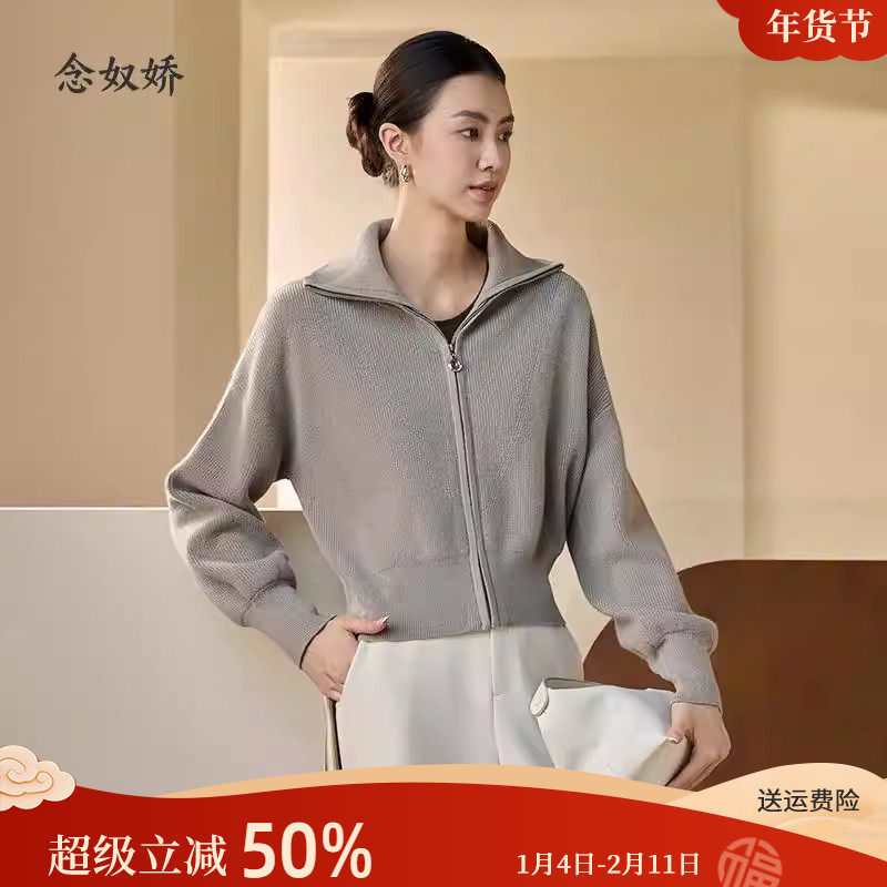 樱桃KIRSH 短款钩花针织毛衣开衫女韩版大翻领韩版针织衫开衫外套