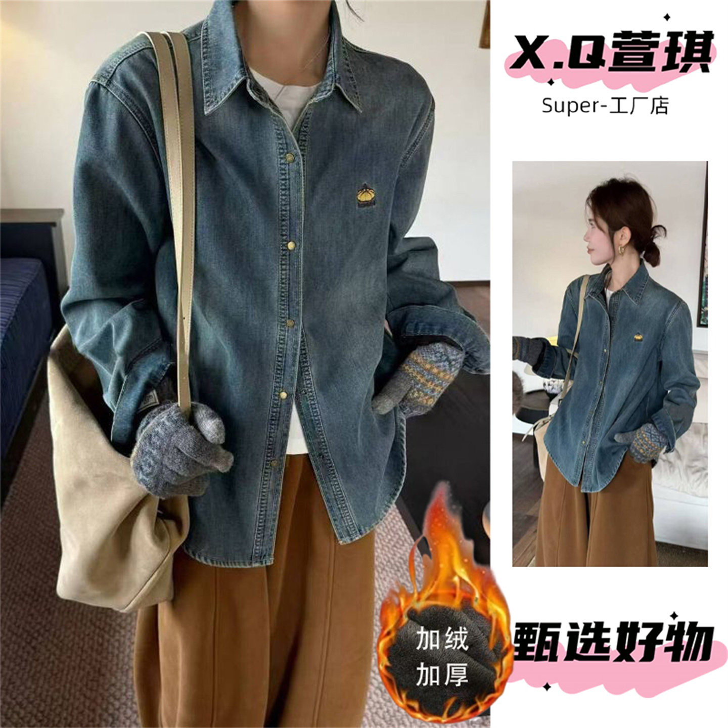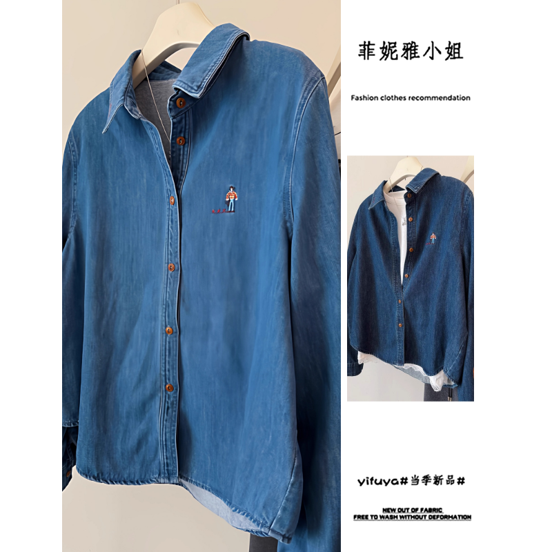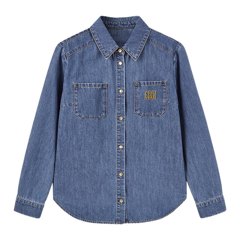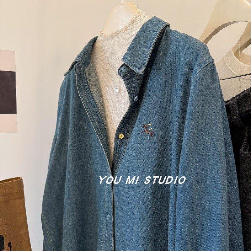 - 长袖衬衫打底女牛仔
