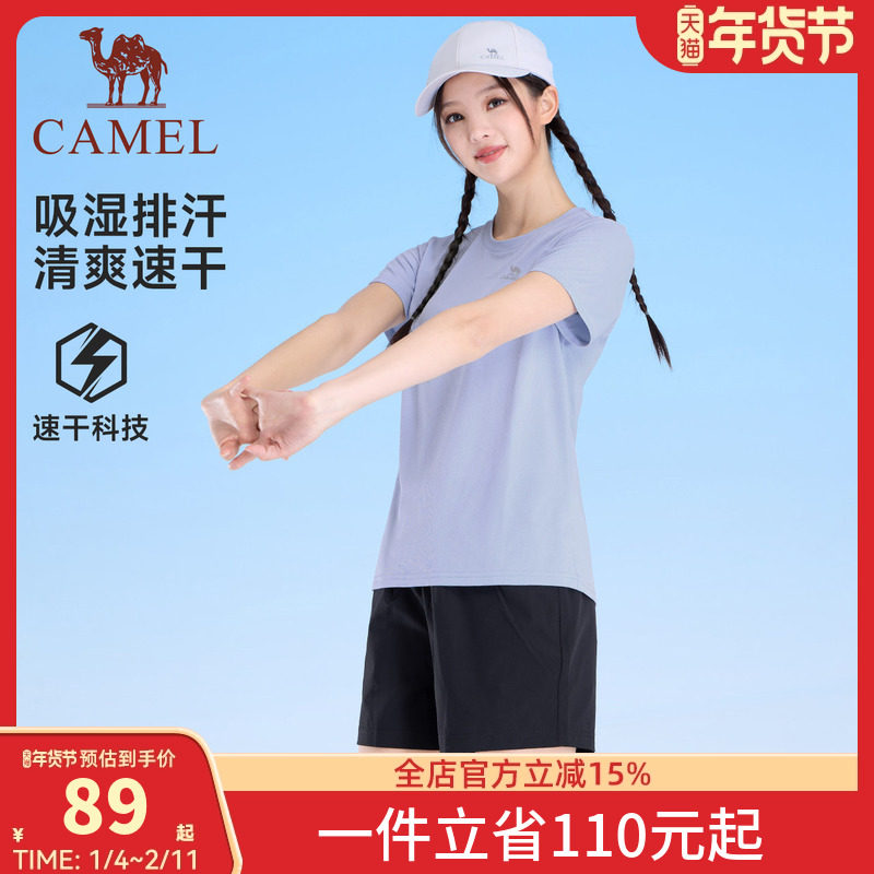 骆驼女装时尚运动套装2025夏季新款速干衣短袖T恤运动短裤两件套
