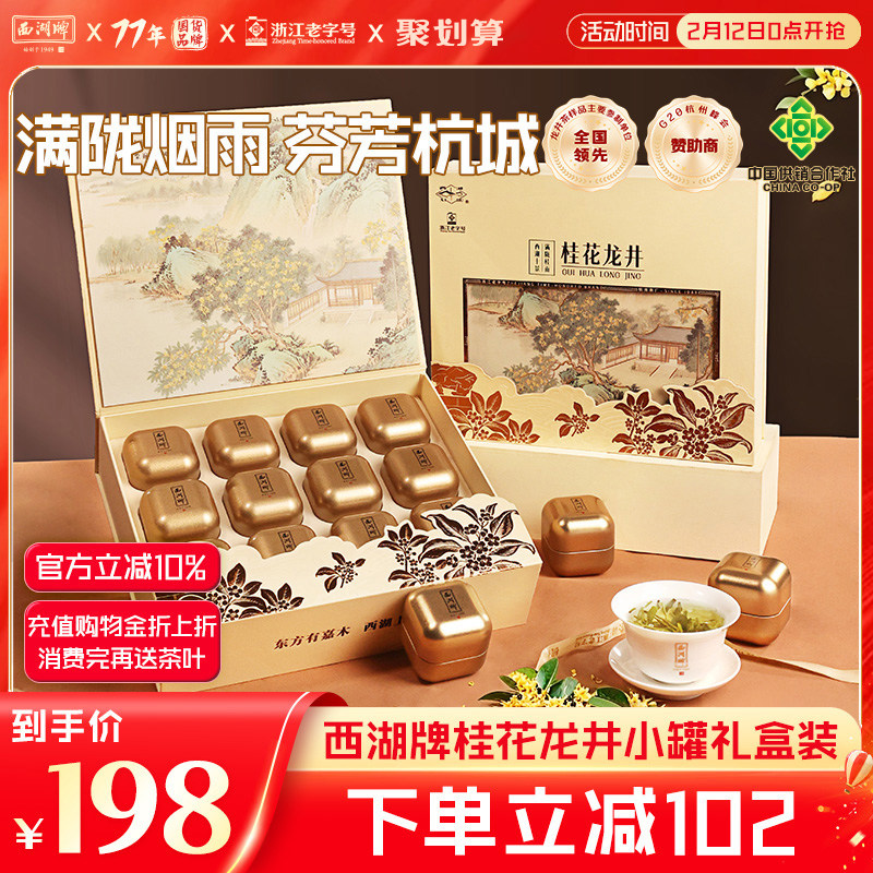 西湖牌桂花龙井茶叶小罐礼盒装古法窨制春茶礼盒装年货送礼送长辈
