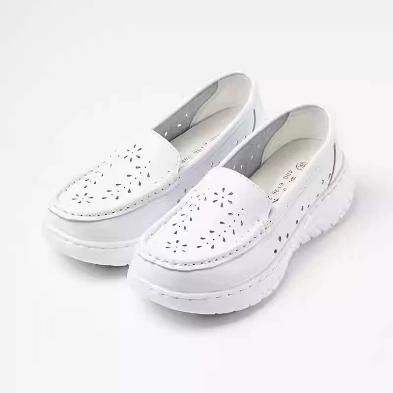 头层牛皮鞋女鞋白色护士鞋真皮镂空凉鞋单鞋坡跟舒适牛筋底软女鞋
