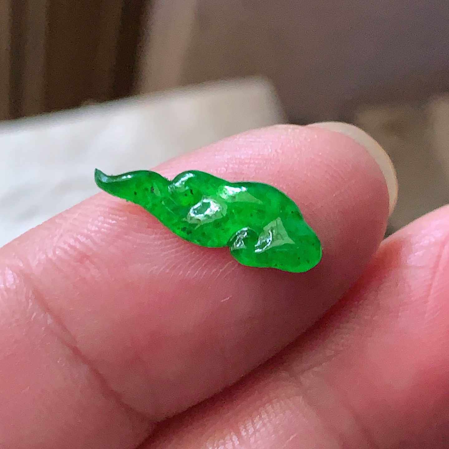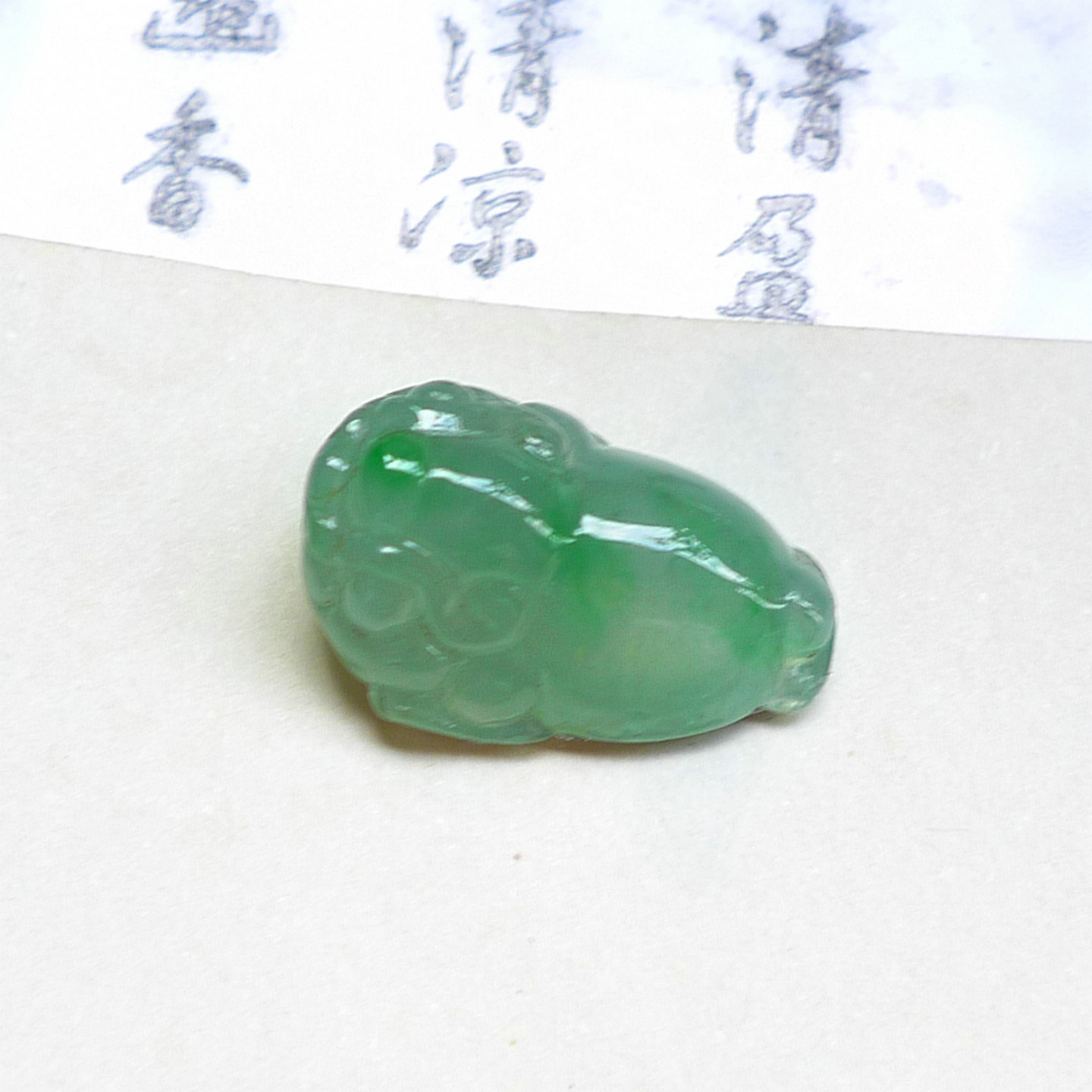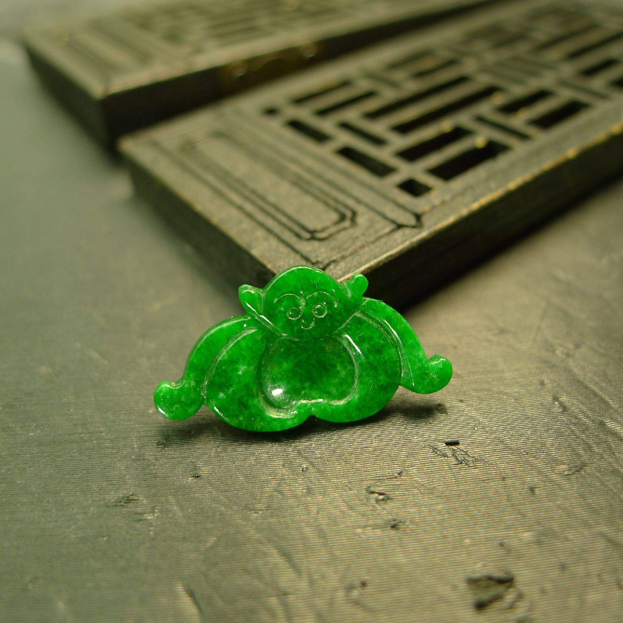 #G490满绿天然A货翡翠蝙蝠戒面 镶嵌戒指DIY编绳配饰裸石