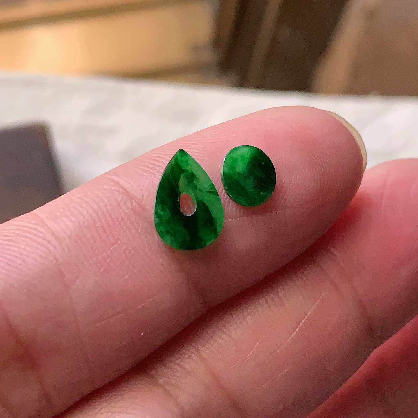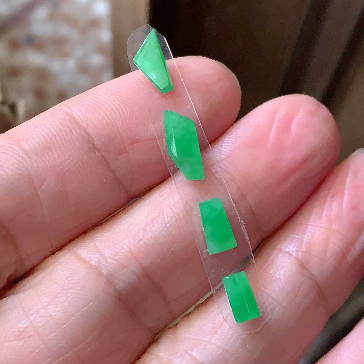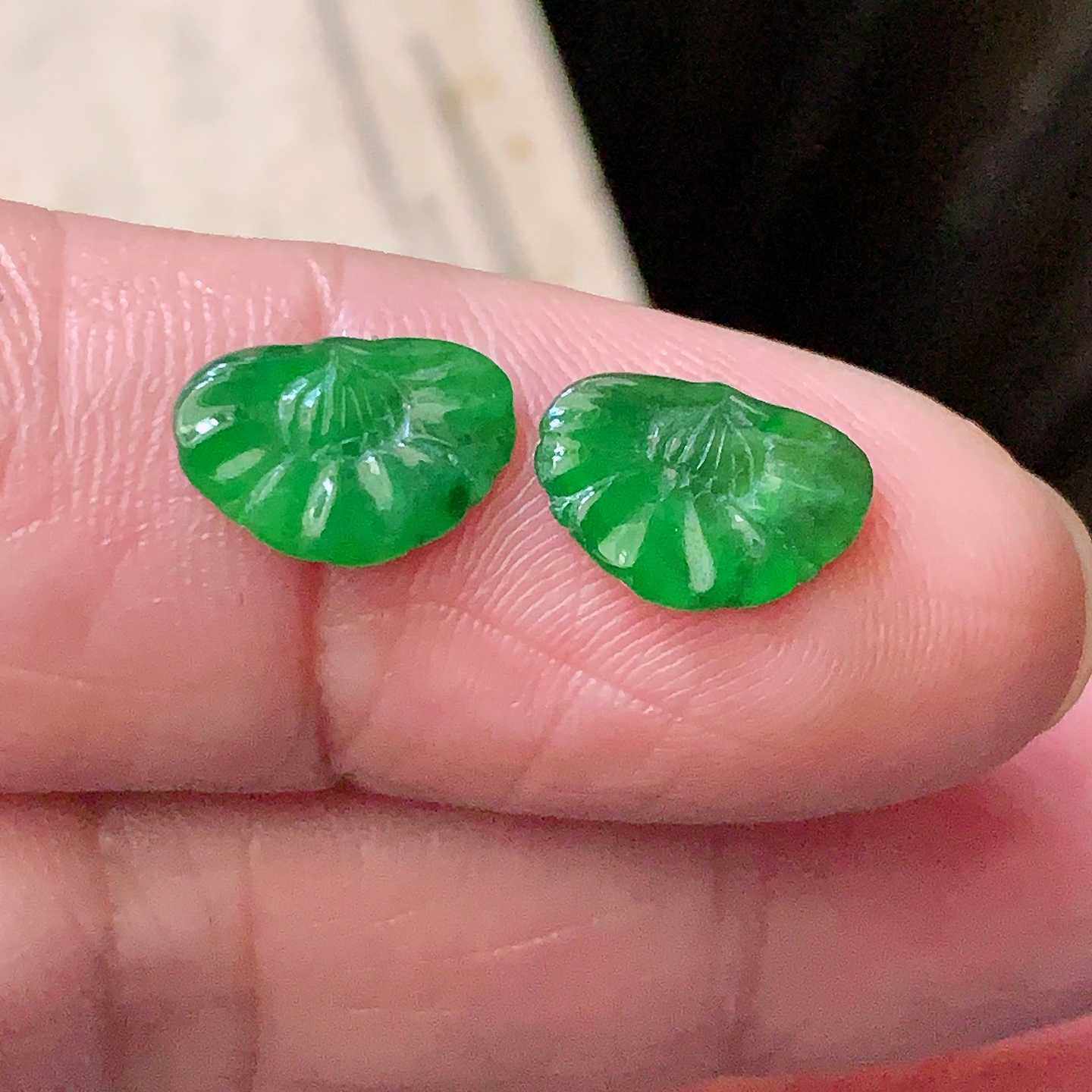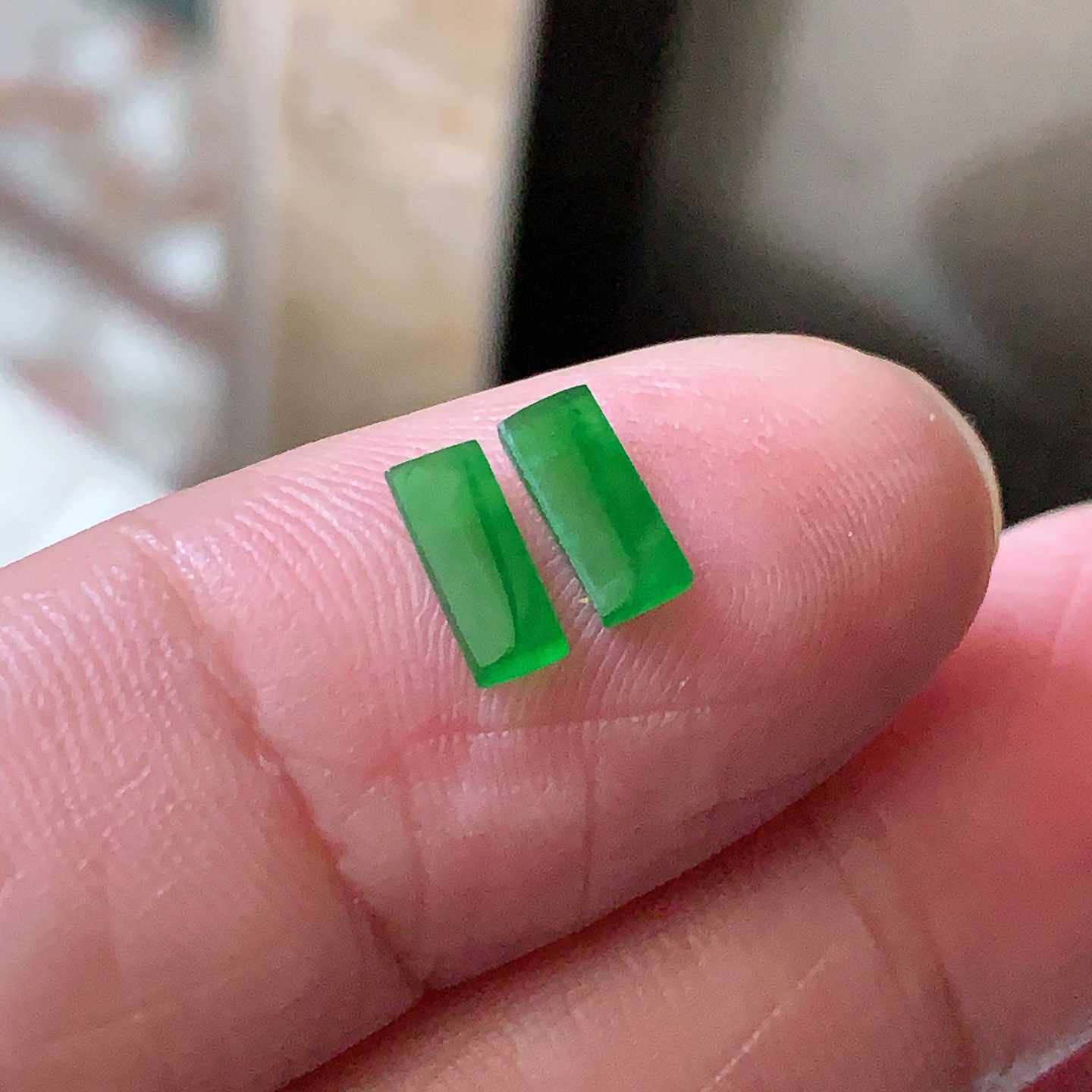 翠都翡翠珠宝天然A货玉石裸石镶嵌面冰种满绿方形戒面一对100307