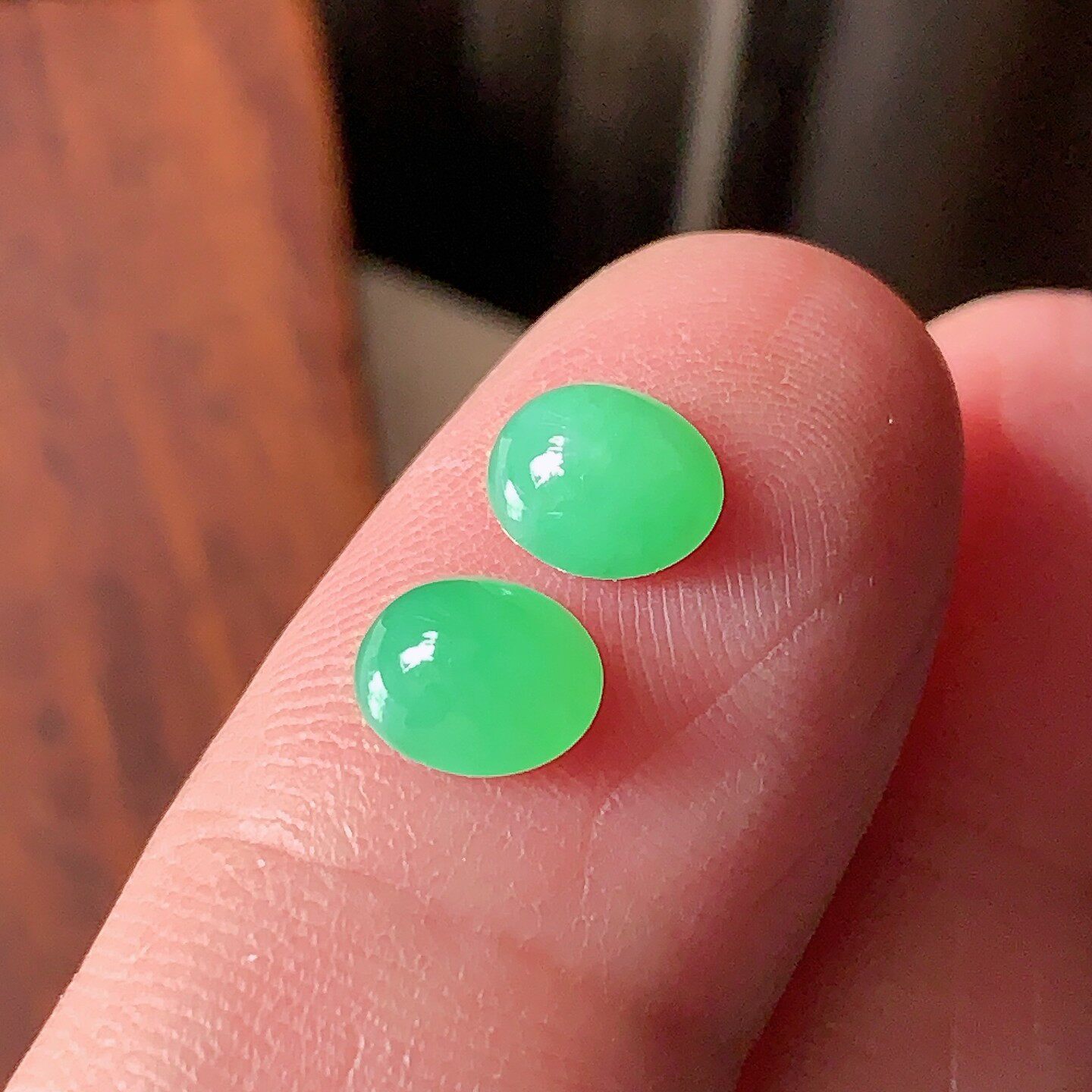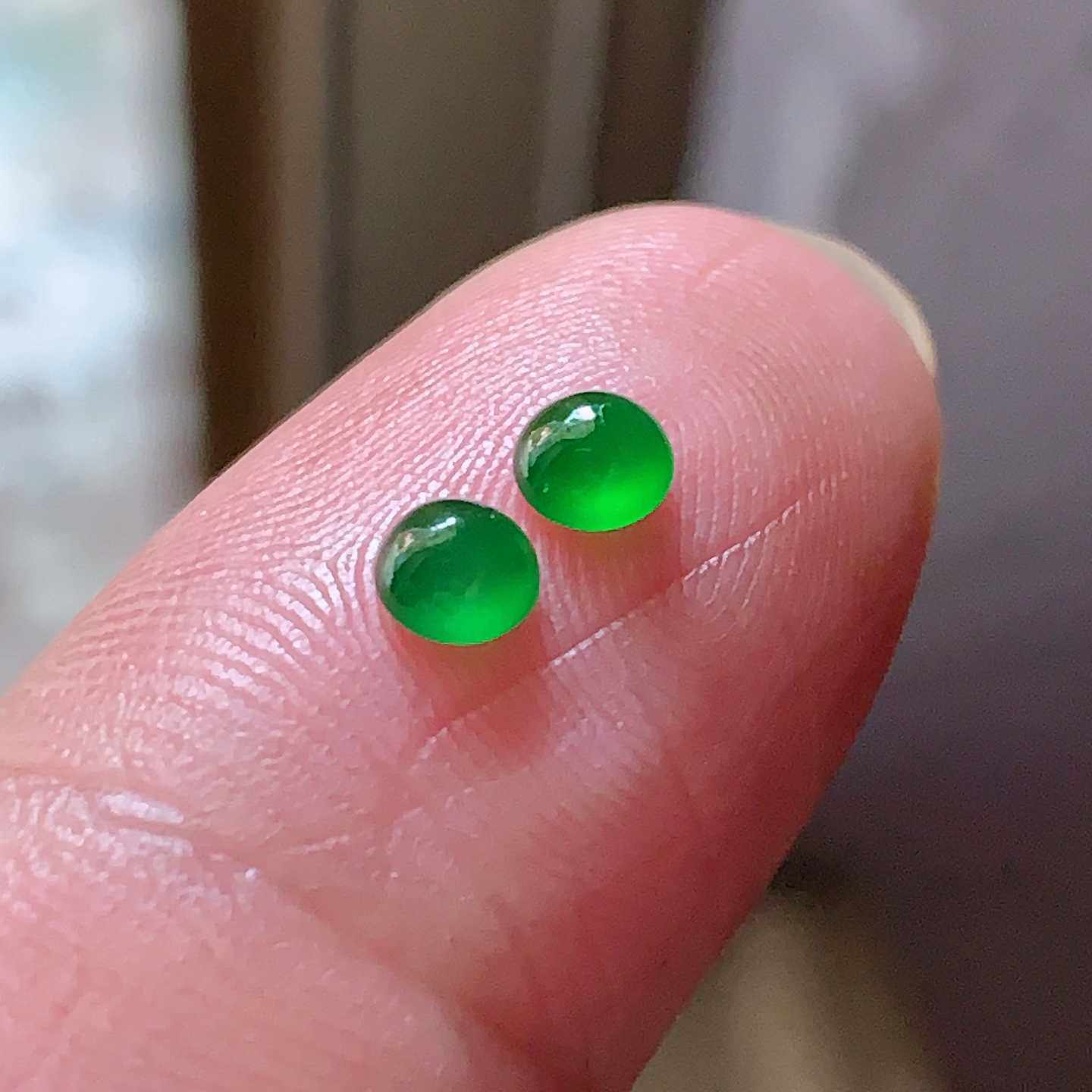 天然翡翠A货玉石裸石镶嵌戒面送证书冰种辣绿蛋面一对200763