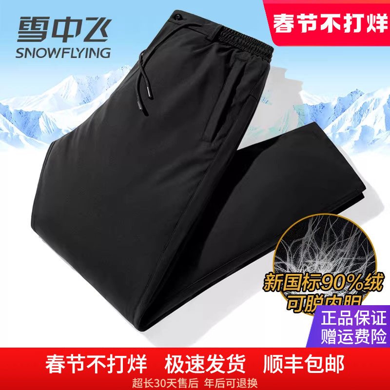 雪中飞男士羽绒裤外穿防风抗寒直筒休闲冬季棉裤加厚保暖鹅绒裤子