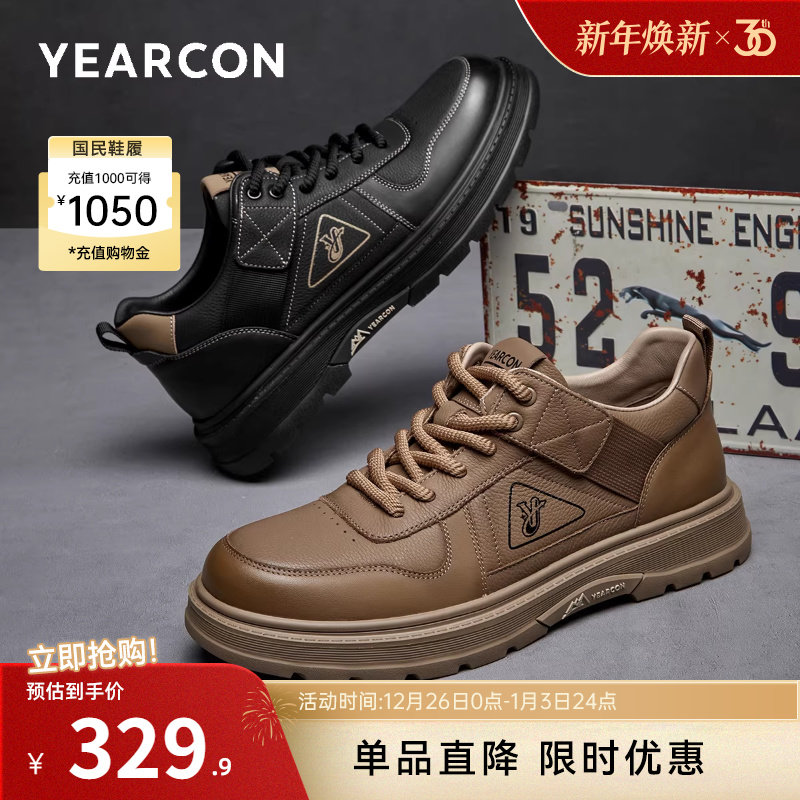 意尔康男鞋2025秋季新款真皮马丁靴男士中帮休闲皮鞋英伦风工装鞋
