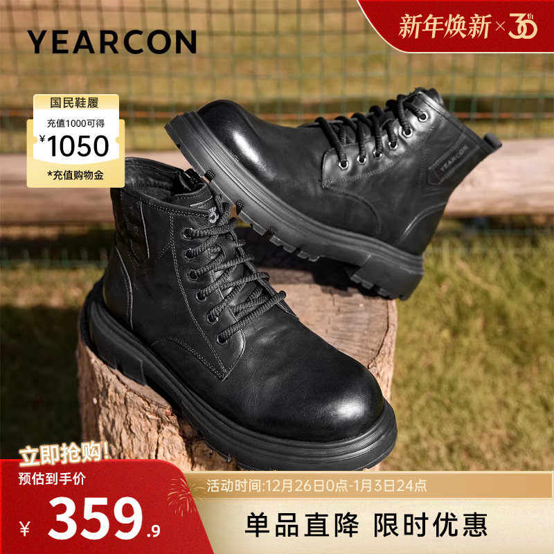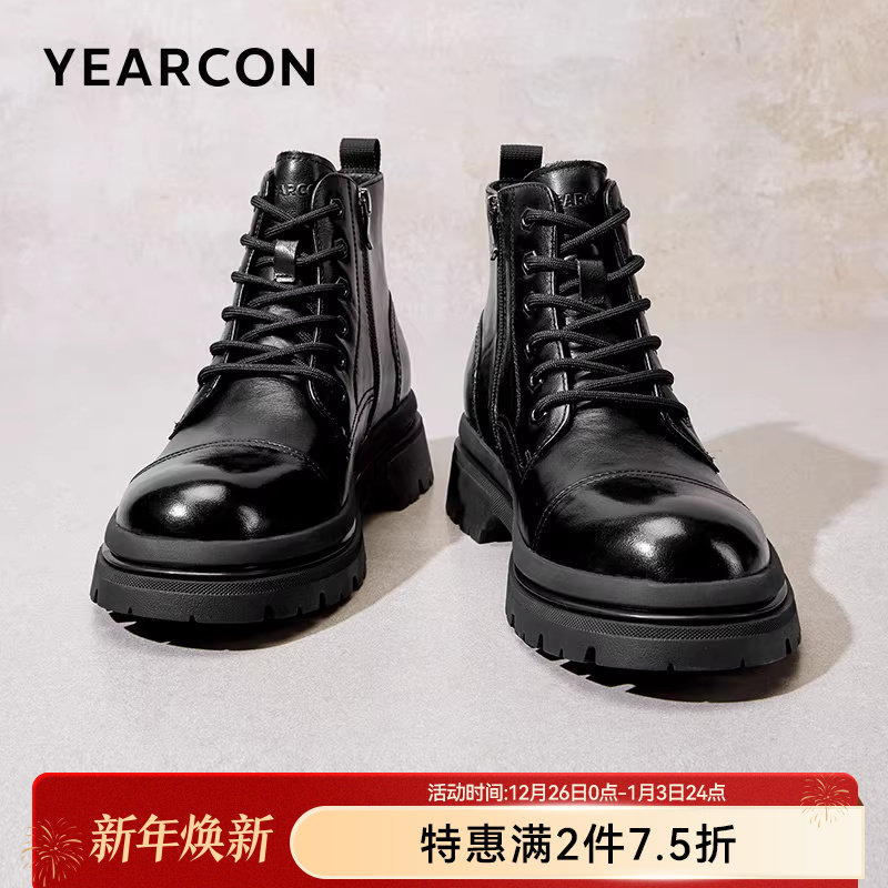 意尔康男鞋2025新款冬季真皮靴子高帮皮鞋男士加绒工装马丁靴中帮