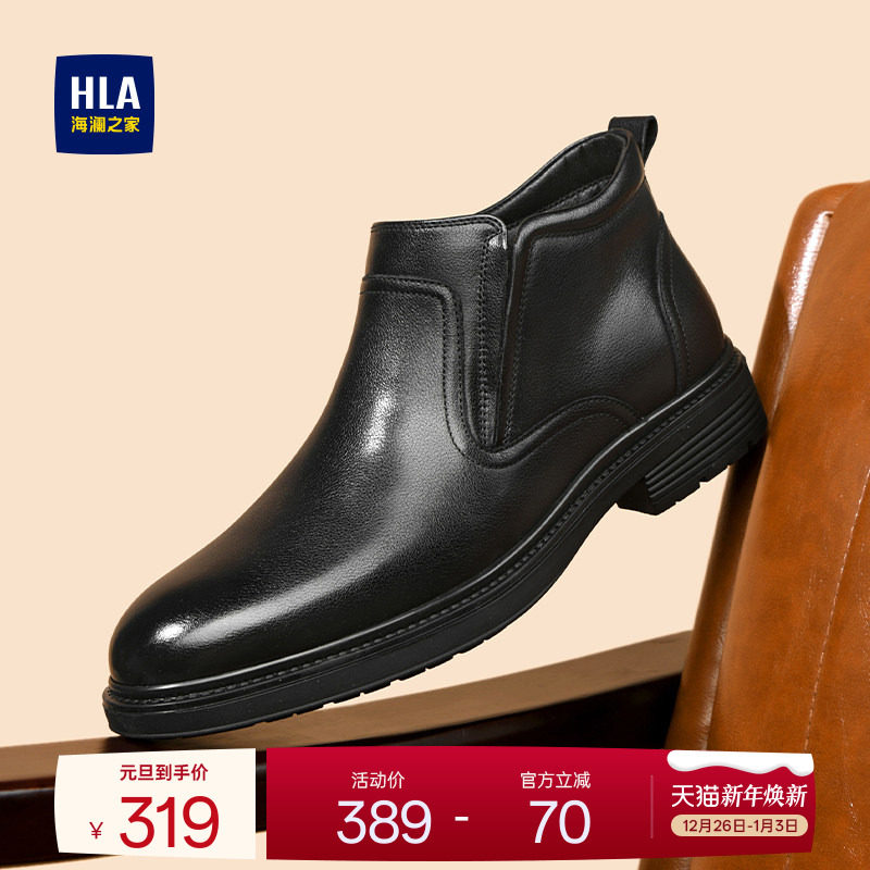 HLA/海澜之家男鞋新款冬季真皮加绒皮鞋中帮套脚短靴男士切尔西靴