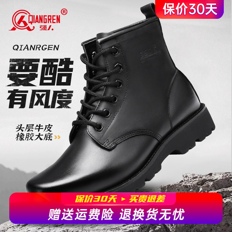 强人3515正品皮靴男高帮牛皮工装鞋真皮商务皮鞋马丁靴中帮工装靴