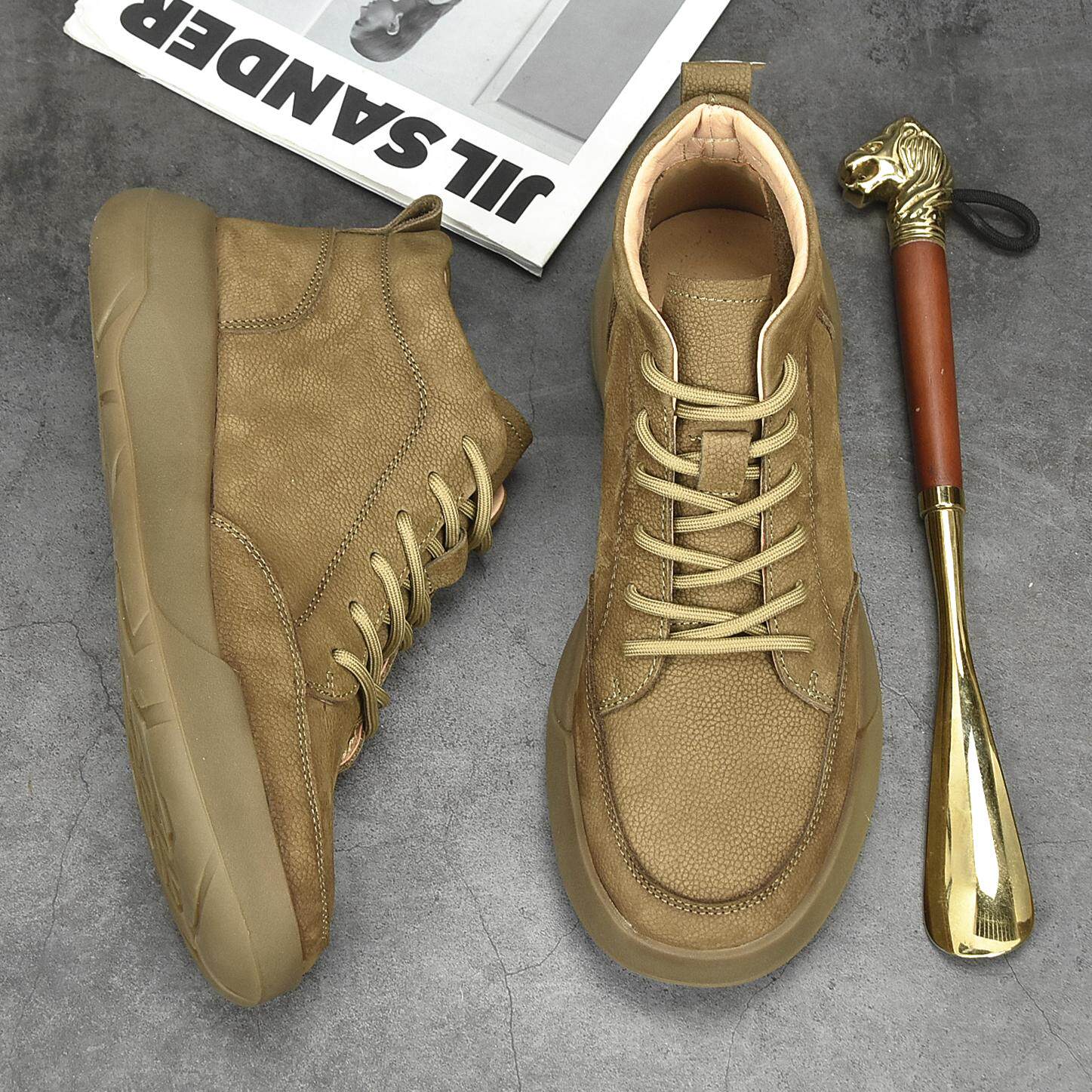 男鞋高帮秋冬季厚底真皮潮流鞋子男2025新款中帮皮鞋男士马丁靴子