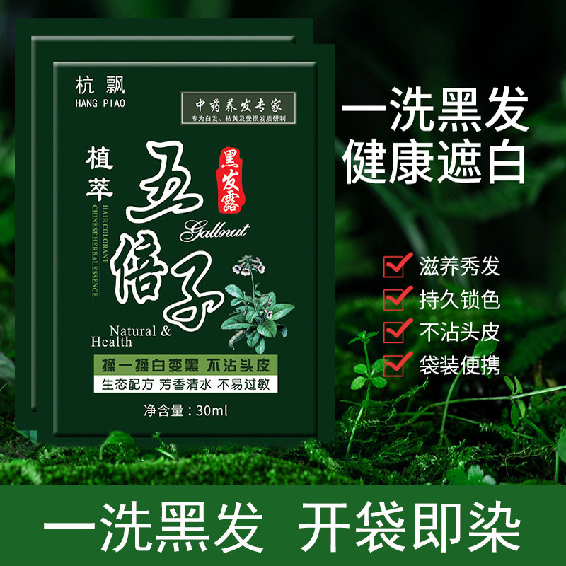 袋装一洗黑染发剂永久盖白发自然黑色植物洗发水天然不伤发染发膏