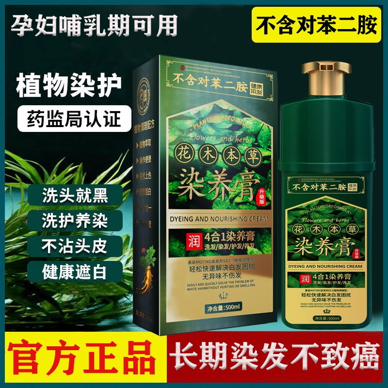 孕妇染发剂植物纯官方旗舰店正品牌遮白发一洗黑染发膏黑色无刺激