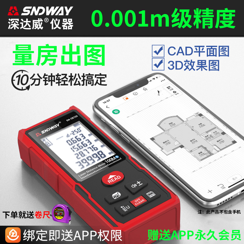 深达威激光测距仪红外线测量尺手持高精度知户型蓝牙量房仪电子尺