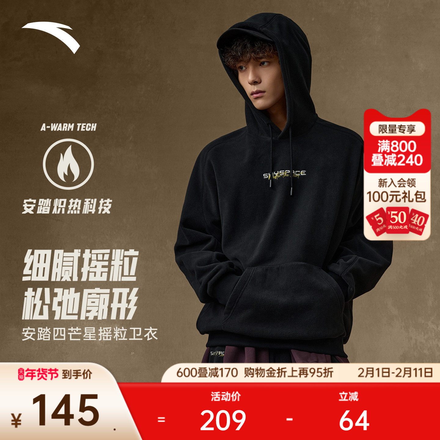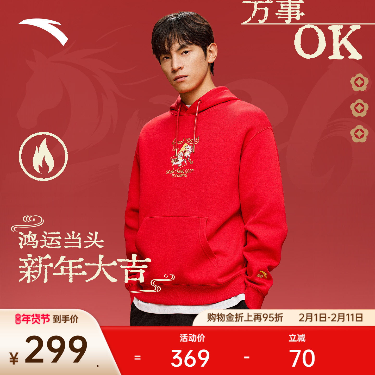 安踏好事发生丨加绒连帽卫衣男马年新年款休闲加厚上衣152618707N